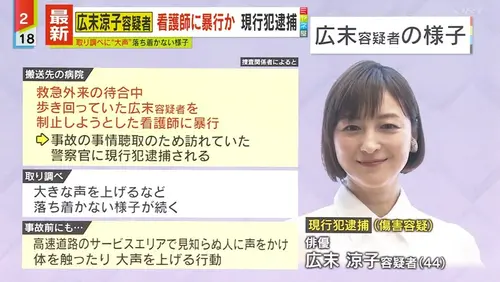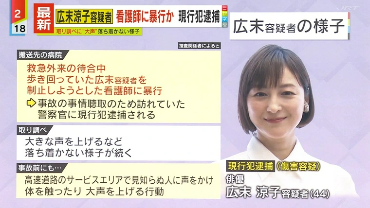 【悲報】自称俳優の広末涼子こと廣末涼子さん、逮捕 看護師を蹴り腕をひっかく