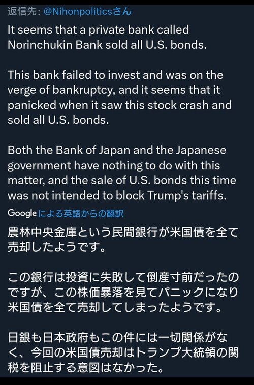 農林中金一つで米国債をここまでクラッシュさせるのは流石に無理があるだろ