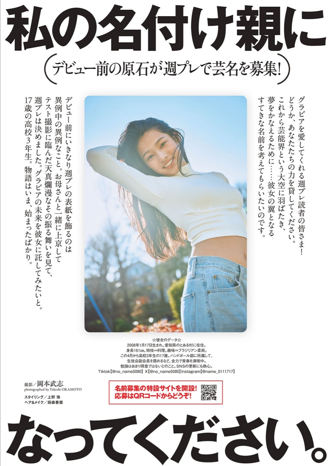 【画像】週刊プレイボーイさん、まだ名無しの謎の現役JKを表紙に抜擢