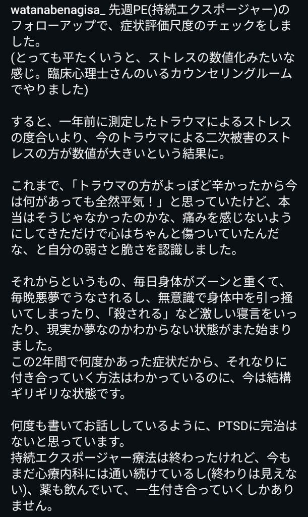 渡邊渚「あのとき殺されていればよかった。死んだ方が楽だと思える」レベルのことを中居にされていた