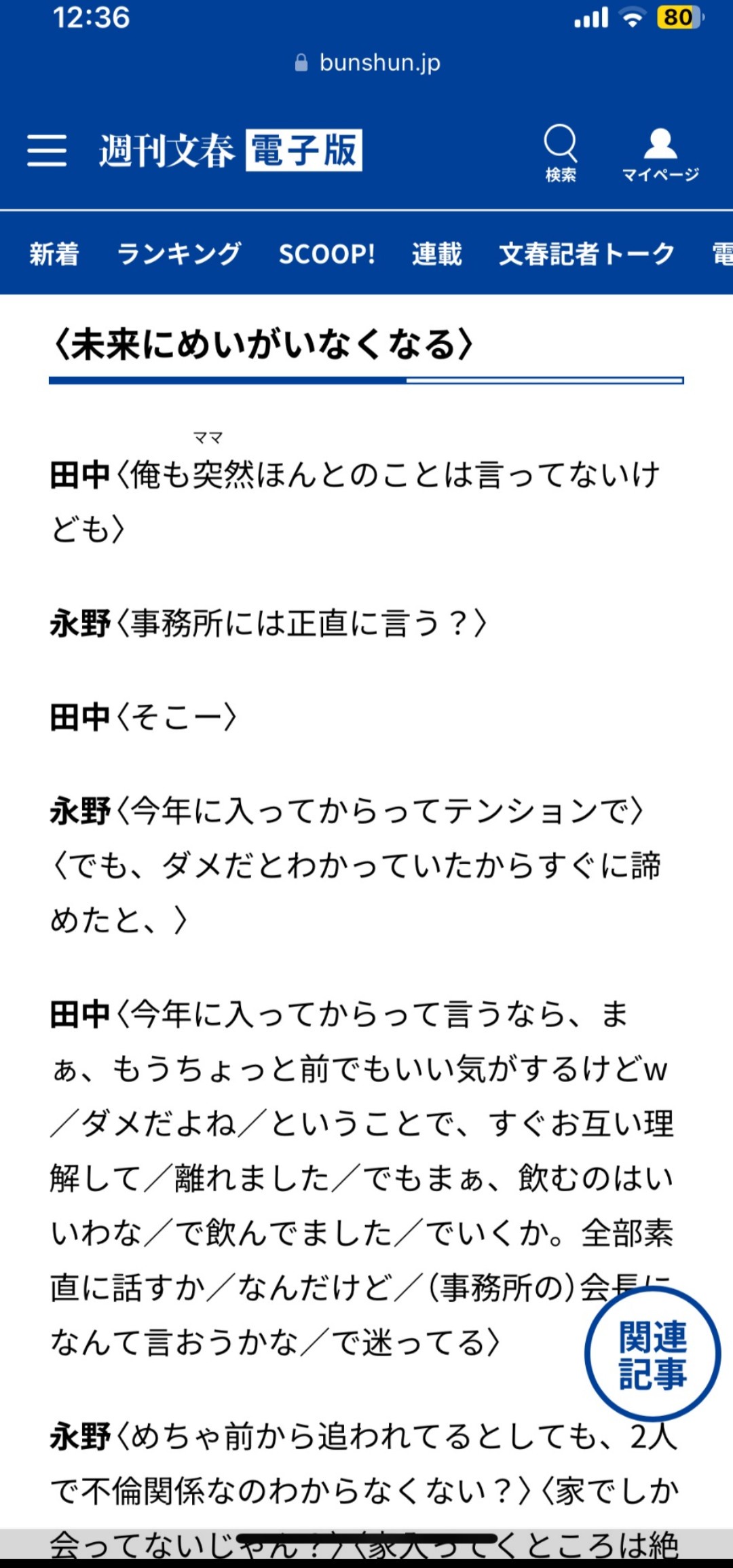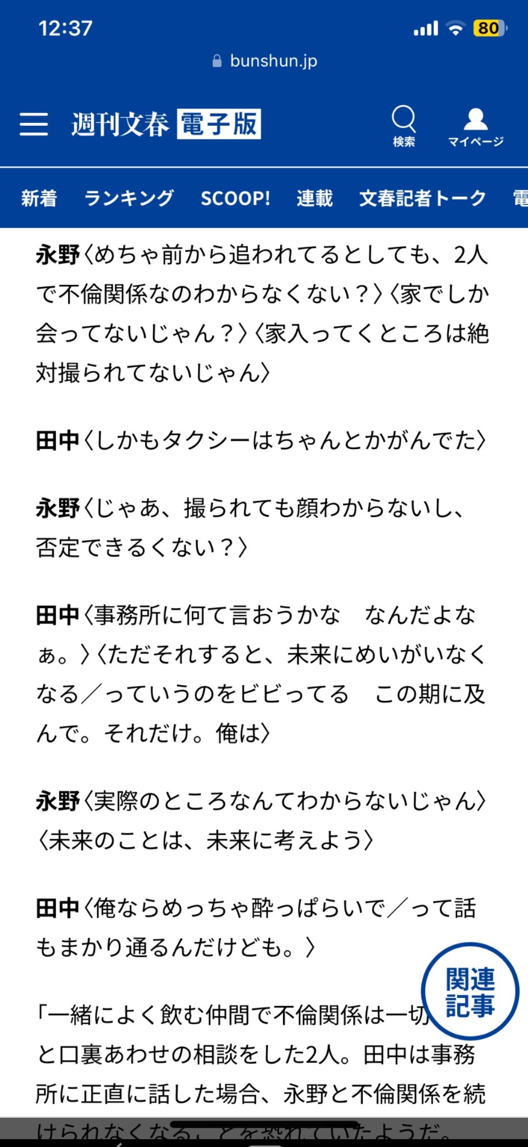 田中「事務所に対してそういう関係だった事を言うかどうかなんだけどね。事務所に対しても嘘つくか」