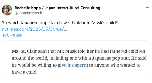 【悲報】イーロン・マスク「日本のポップスターに俺の子供を産んだ奴がいる」
