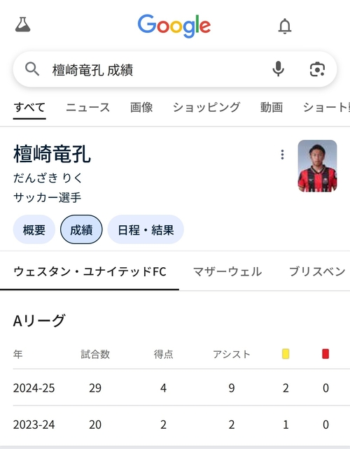 檀崎 今年の4月と5月のAリーグの試合 8試合でレッドカード0枚 イエローカード2枚