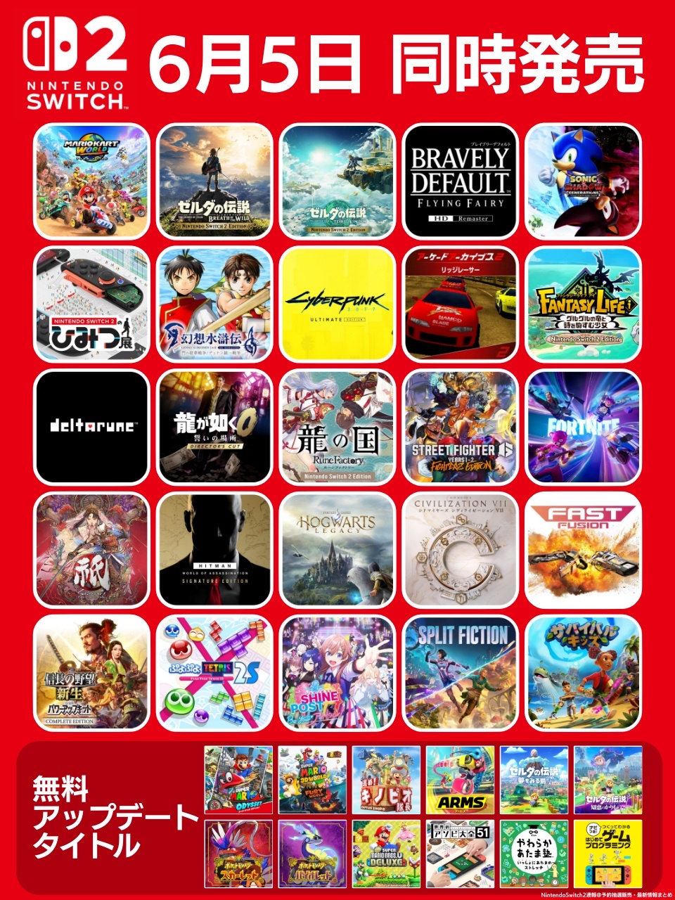 Switch2を発売日に買うと遊べるゲームがコチラwww
