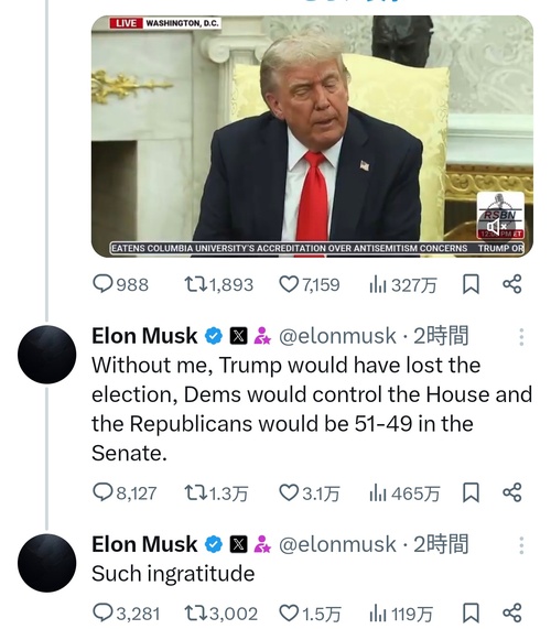 つい先日までイーロンは素晴らしい人って言ってなかったか(笑)