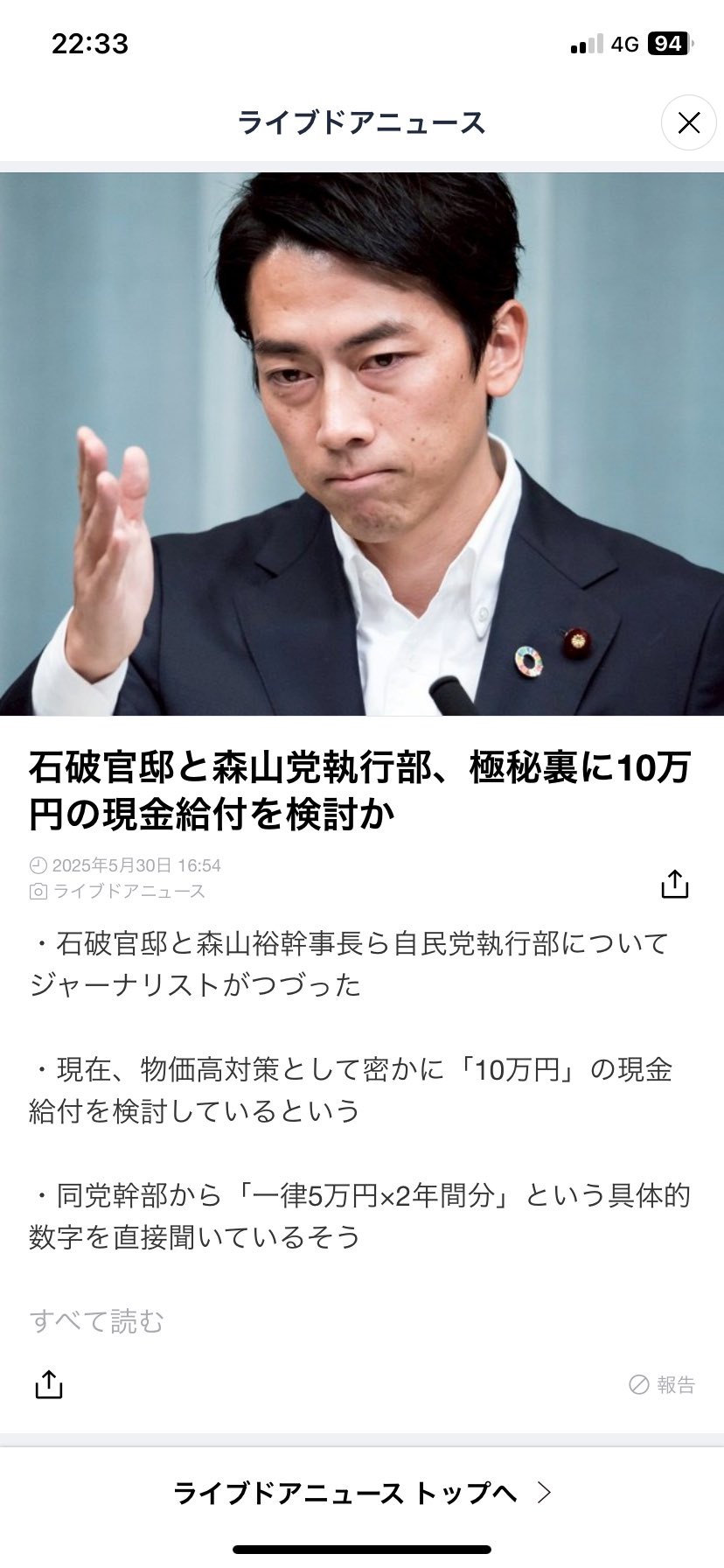 全国民への石破給付金10万円💴、最終段階へwwwww