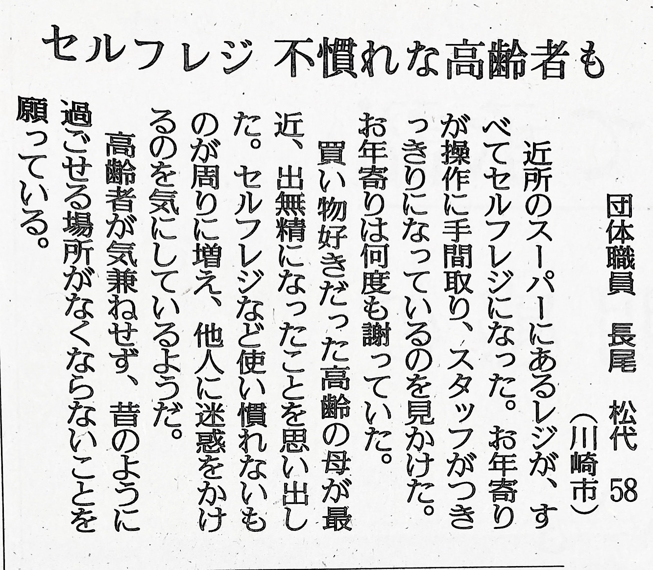 お年寄り用にセルフレジ代行マン置けばええだけやろ