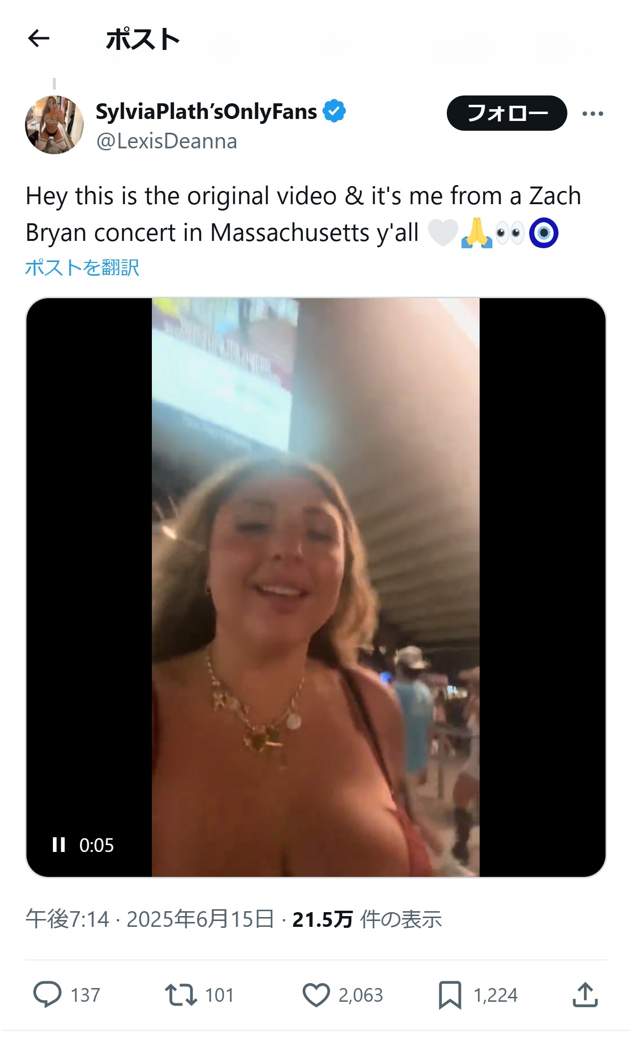 イスラエル人の動画ではなく米国人が去年コンサートで追っかけしている映像で