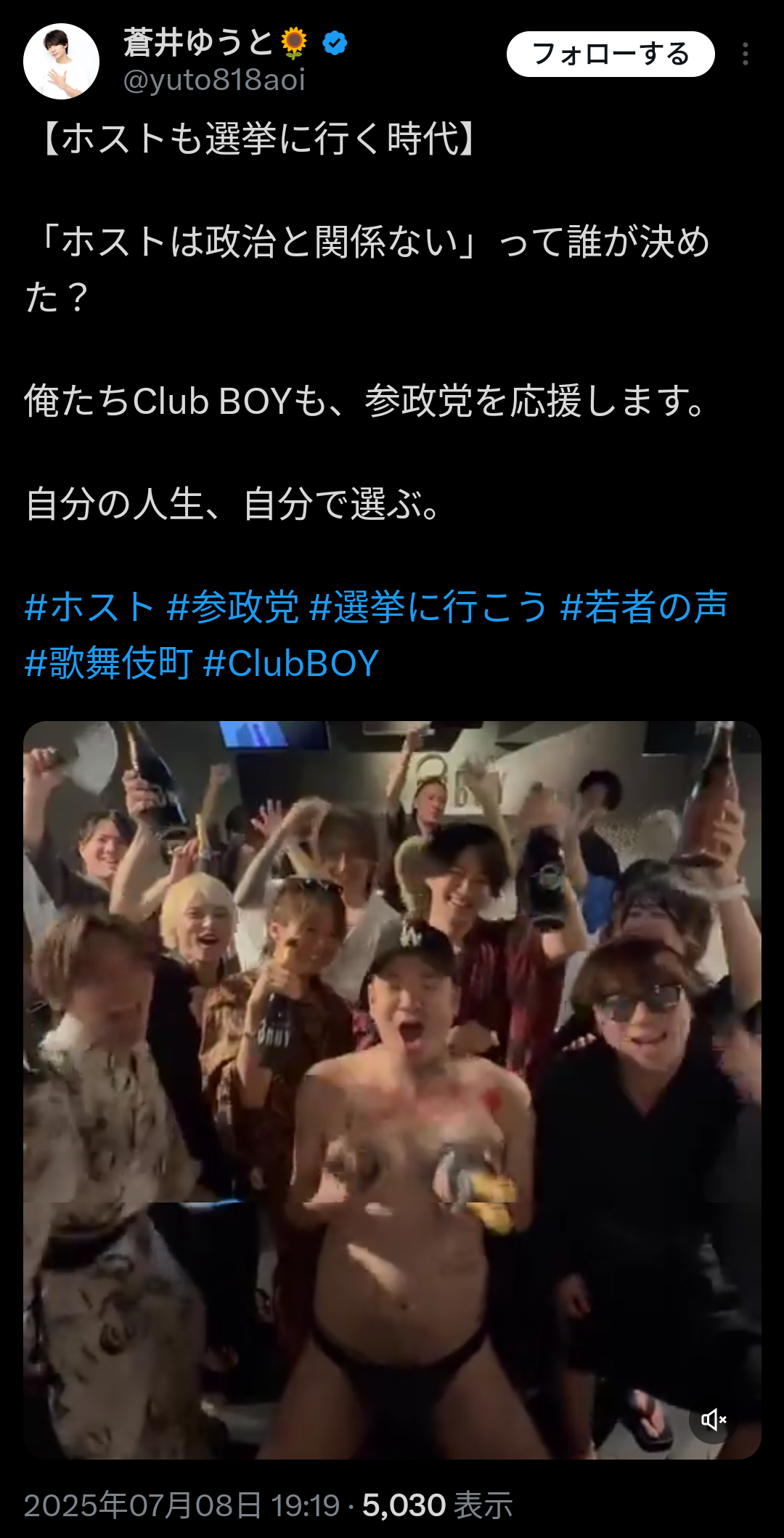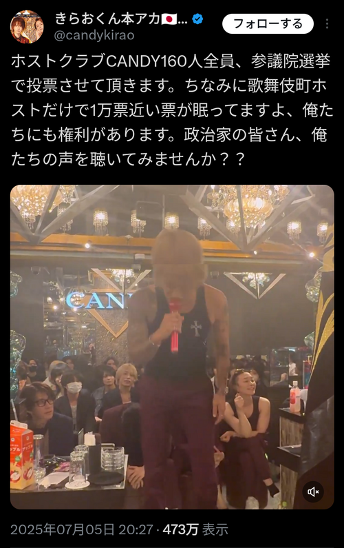 【愛国者朗報】歌舞伎町のホスト1万人「参政党に投票します」