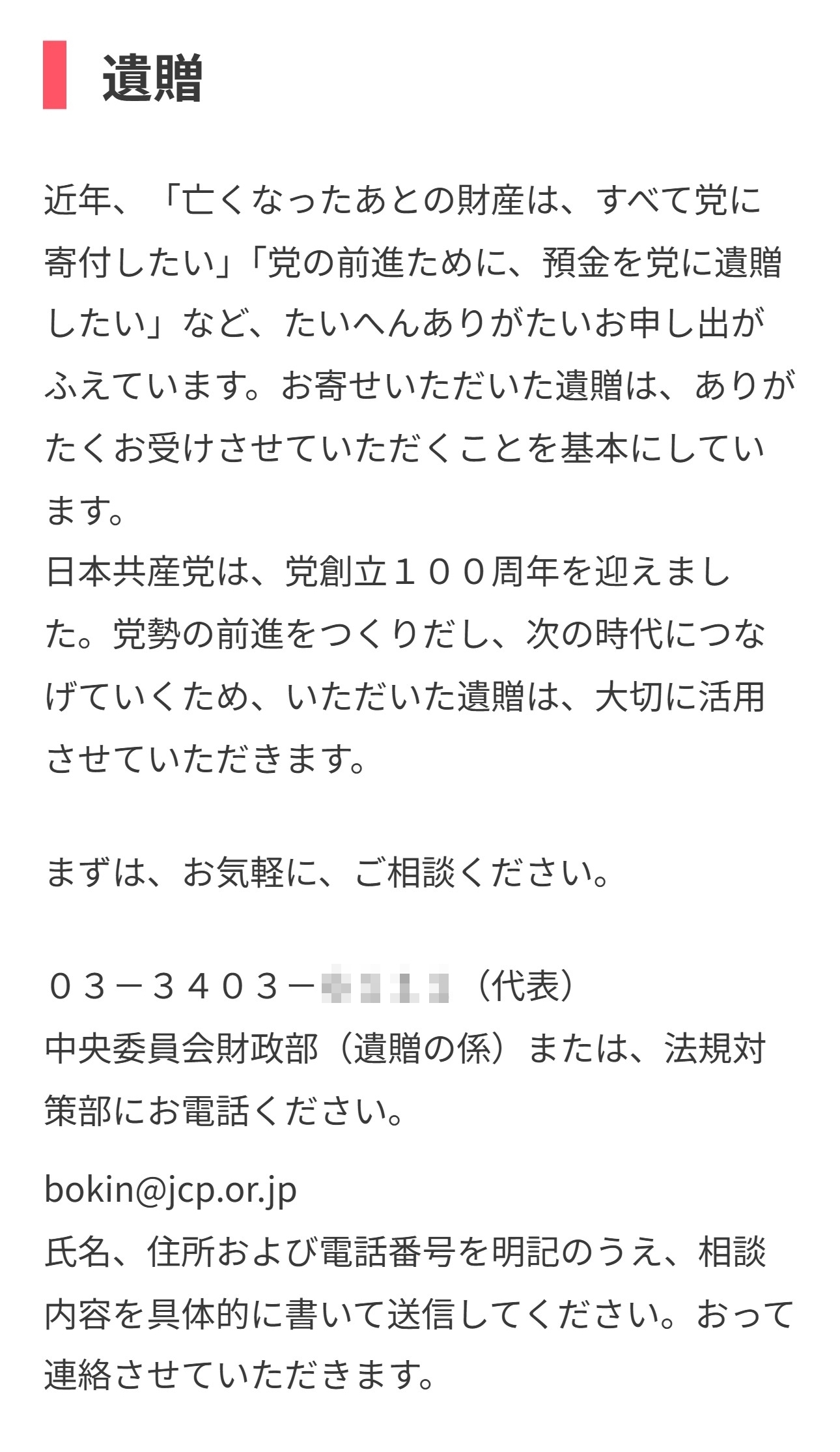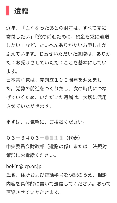 共産党「全財産を寄付したい、預金を党に遺贈したい等の声が増えています。ありがたく頂戴いたします」