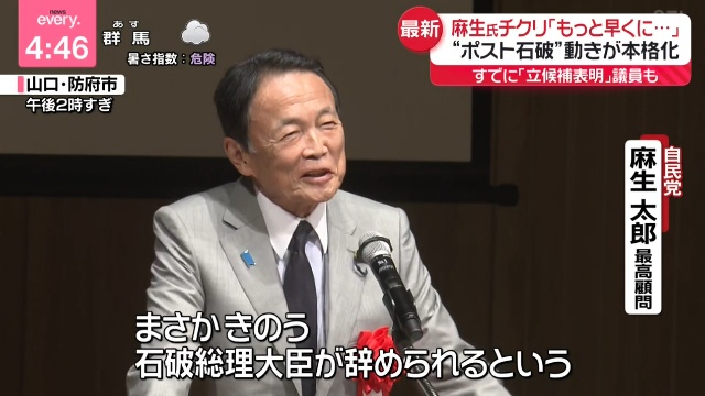 麻生太郎「まさか石破総理が総裁をお辞めになるとは思ってもなかった(満面の笑み)」