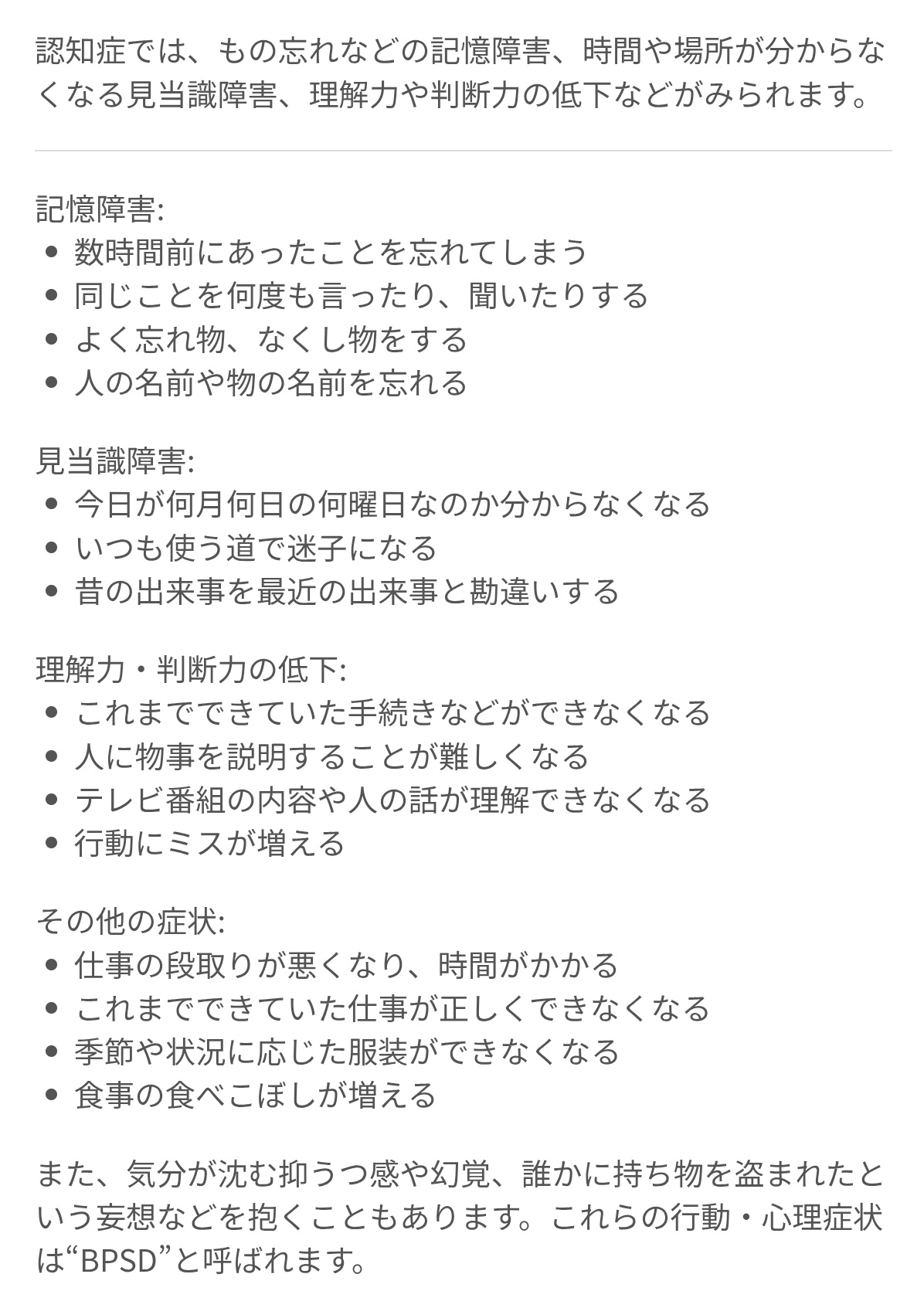 わかりやすいのは冷蔵庫に洋服しまうとか何か忘れたことを思い出せずにイライラして人に当たるとかやり始めたらもう終わりの始まり