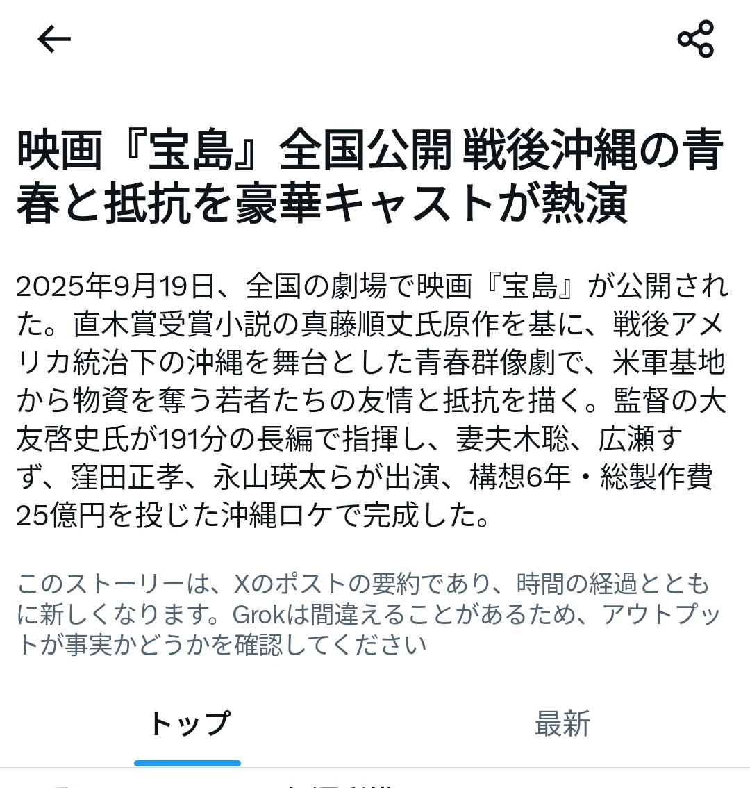 【悲報】映画『宝島』公開2日で興行収入1億届かず7500万円止まりで大失敗www