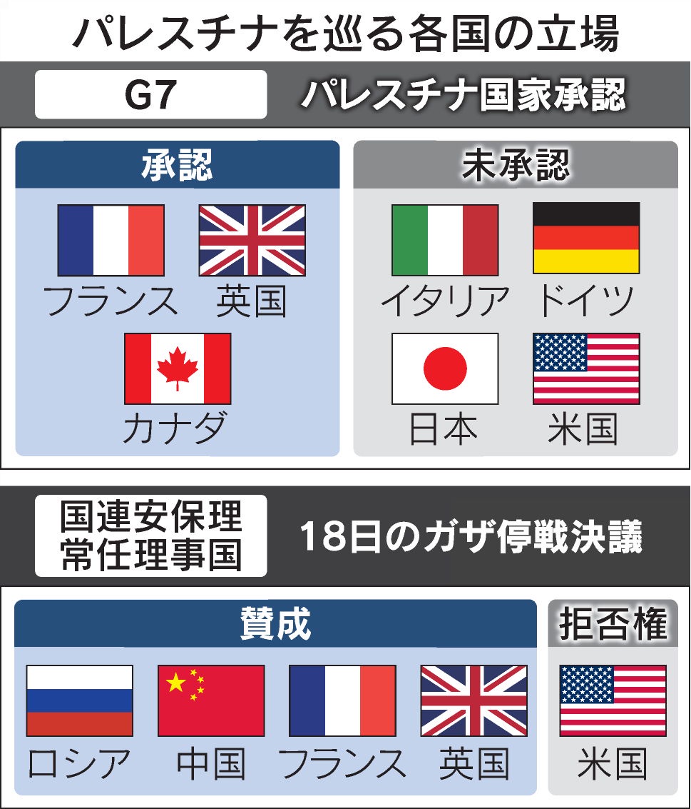 フランス、イギリスがパレスチナ国家承認、日本ドイツイタリアは拒否