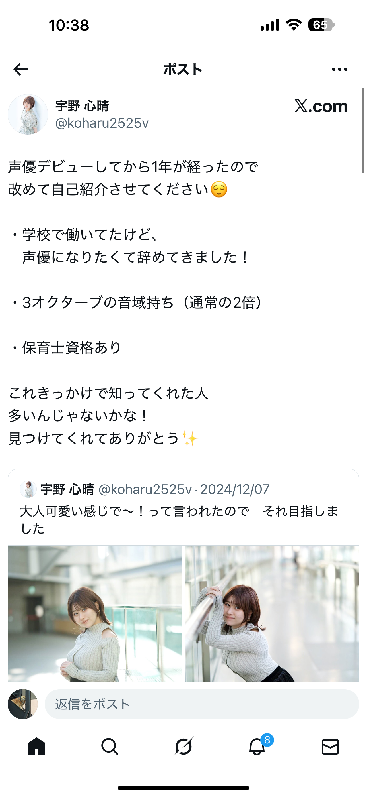 【画像】新人声優の宇野心晴さん、売れるためにしっかりアピールする