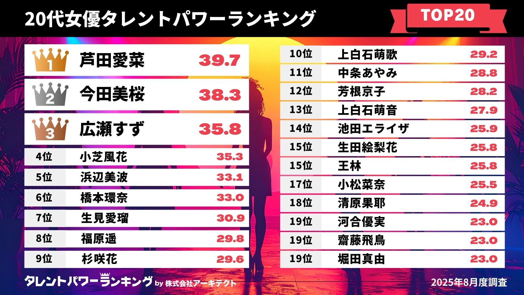 【朗報】20代若手女優タレントトップ20、知らない女優がいないwwwww