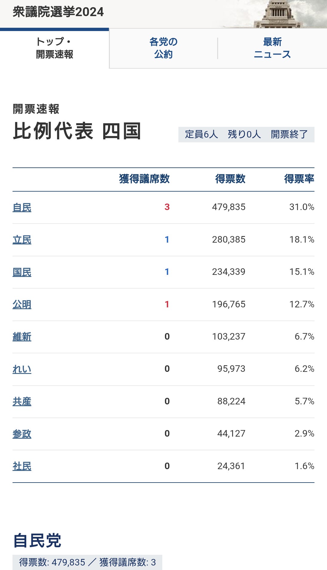 まず四国比例区の6議席を全て自民が確保しないといけないけど