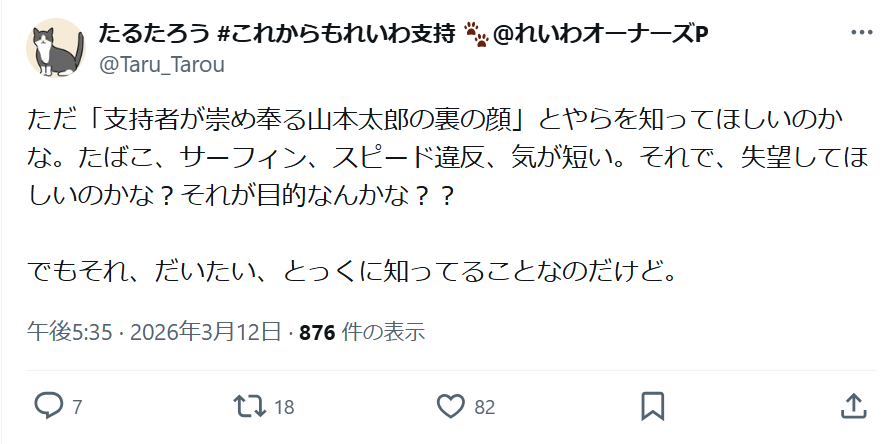 元れいわ支持者「山本太郎支持するの辞めます」 6000いいね