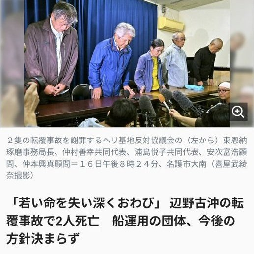 【追悼】テレビメディアさん、辺野古で研修旅行中の不幸な事故で亡くなった船長を特集